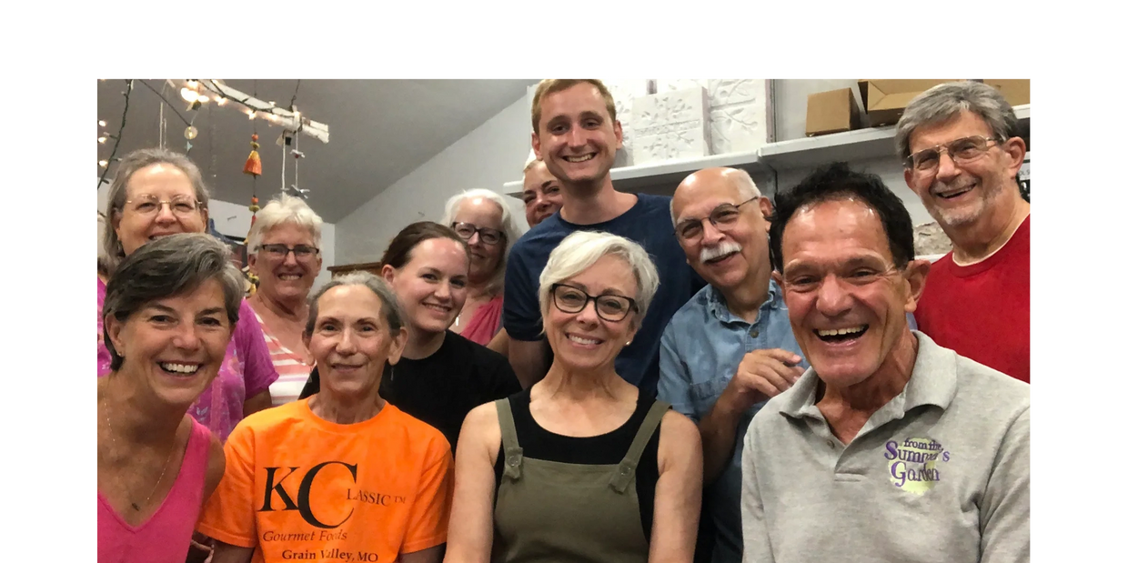 Many of these artists in our group have enjoyed working together for many years. Pictured here, back row left to right, are Carolyn Addington, Lizz Dorgan, Patty Casalou, Leanne from South 20 Studios, Natalie Thomas, Seth Ferguson, Bill Anderson, and Frank Mangiracina. Front row left to right: Lisa Freeman, Nina Ward, Bemby Yocum and Steve Hess.